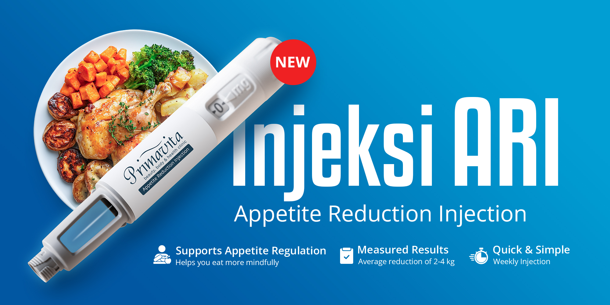 Injeksi ARI adalah terapi medis menggunakan zat aktif (umumnya dari golongan Glucagon-Like Peptide-1 atau GLP-1 receptor agonists) yang disuntikkan ke dalam tubuh untuk membantu mengontrol nafsu makan. Berbeda dengan suntik lemak yang bersifat lokal, ARI bekerja dengan mengontrol sistem metabolisme dan saraf pusat.